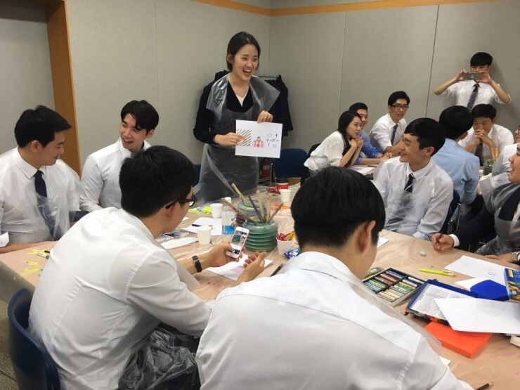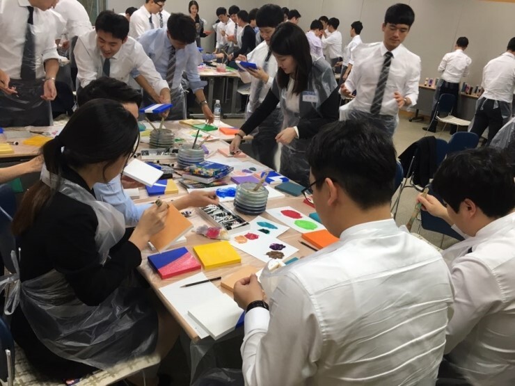 신입사원 교육(벽면 설치 미술) 대구은행 신입사원 교육의 일환으로 벽면 설치 미술 교육을 진행하였습니다. "나의 각오와 비전"이라는 주제로 4시간 / 63명의 직원들의 다양하고 창의적인