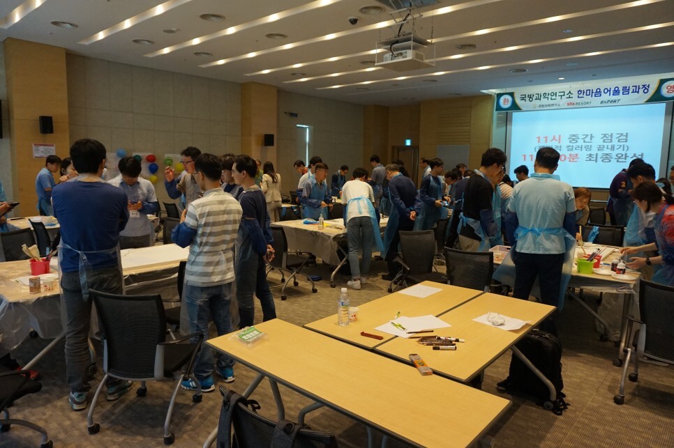 비전 드로잉(국방 과학 연구소) 국방 과학 연구소 한마음 어울림 과정에 초대되어 팀빌딩 과정인 비전 드로잉을 진행하였습니다. 오늘의 주제는 " 함께 그리는 비전, 세계 일류 국방과학