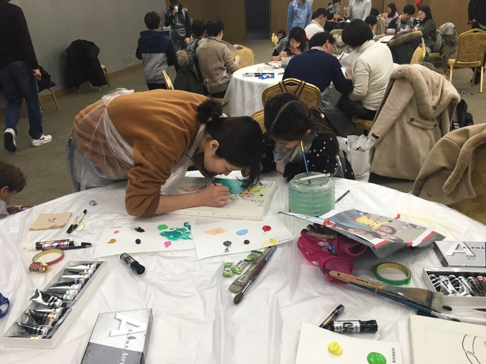 어린아이 들이 뛰지도 않고, 울지도 않고 엄마, 아빠하고 너무나 열심히 그림을 그린다는 점이였어요