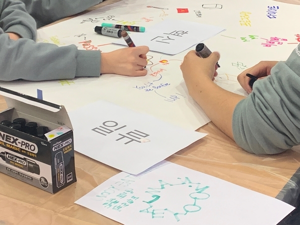 그래피티에 앞서서 아이스브레이킹과 핵심가치를 녹여내는 마인드맵,