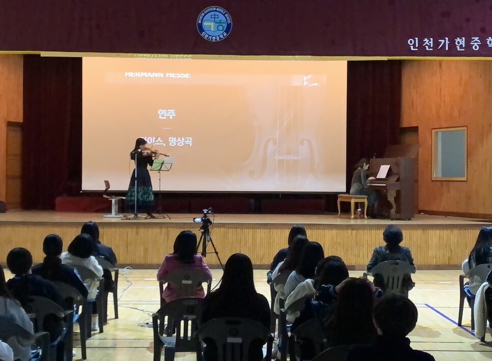 인천 서구 도서관 초청으로 가좌중학교, 가현중학교에서 헤르만 헤세 콘서트를 진행하였습니다.