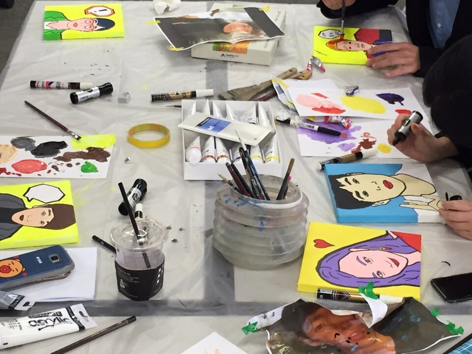 롯데 하이마트 1년차 신입사원 힐링 교육과정인 팝아트 교육(자화상 그리기)을 진행하였습니다.