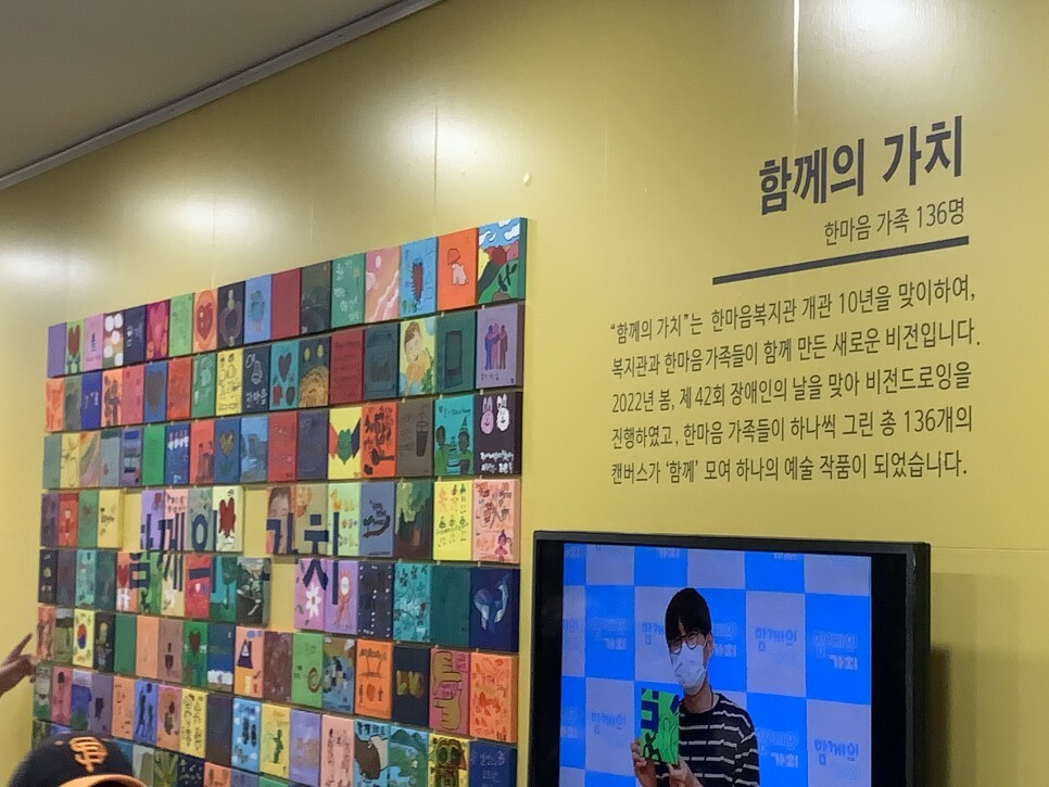 성남시 한마음 복지관 (벽면 설치 미술) 성남시 한마음 복지관 개관 10주년은 맞이하여 함께의 가치라는 주제로 벽면 설치 미술 작업을 진행하였습니다. 제 42회 장애인의